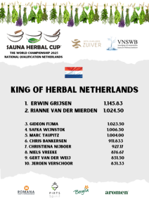 - bijzondere prestaties van saunameesters over hun gebruikte kruiden, bloemen en planten