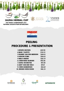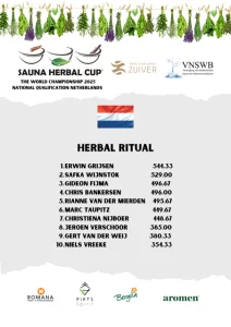 • bijzondere prestaties van saunameesters over hun gebruikte kruiden, bloemen en planten